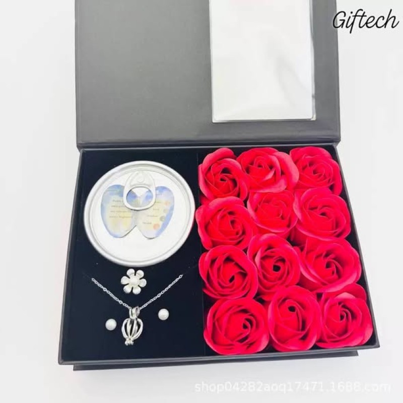 একটি এলিগ্যান্ট ও রোমান্টিক গিফট, যেখানে রয়েছে একটি আকর্ষণীয় নেকলেস এবং ১২টি গাঢ় লাল গোলাপ। প্রিয়জনের জন্য স্মরণীয় ও আবেগপূর্ণ উপহার।